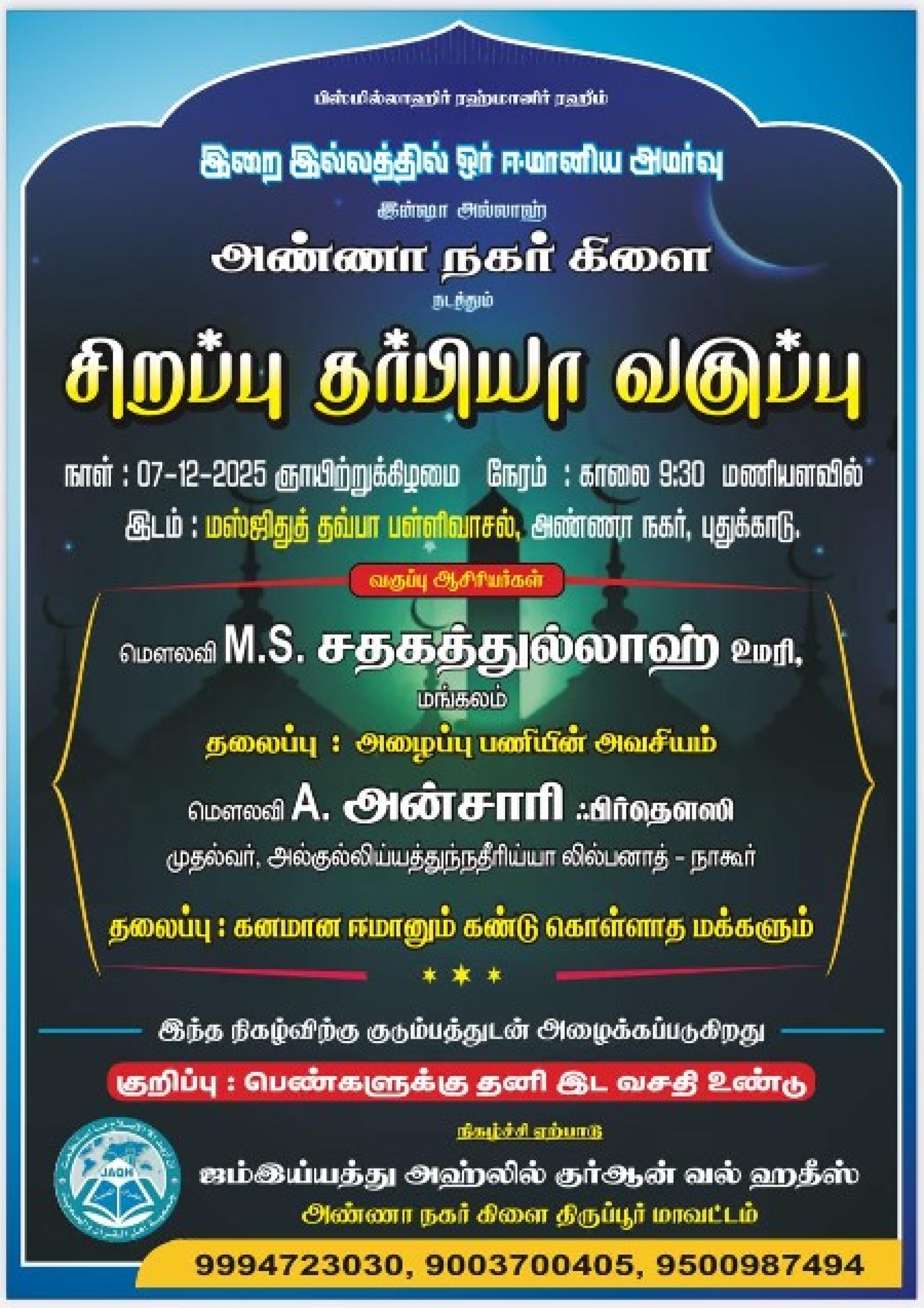 நாள் : 07-12-2025 ஞாயிற்றுக்கிழமை நேரம் :